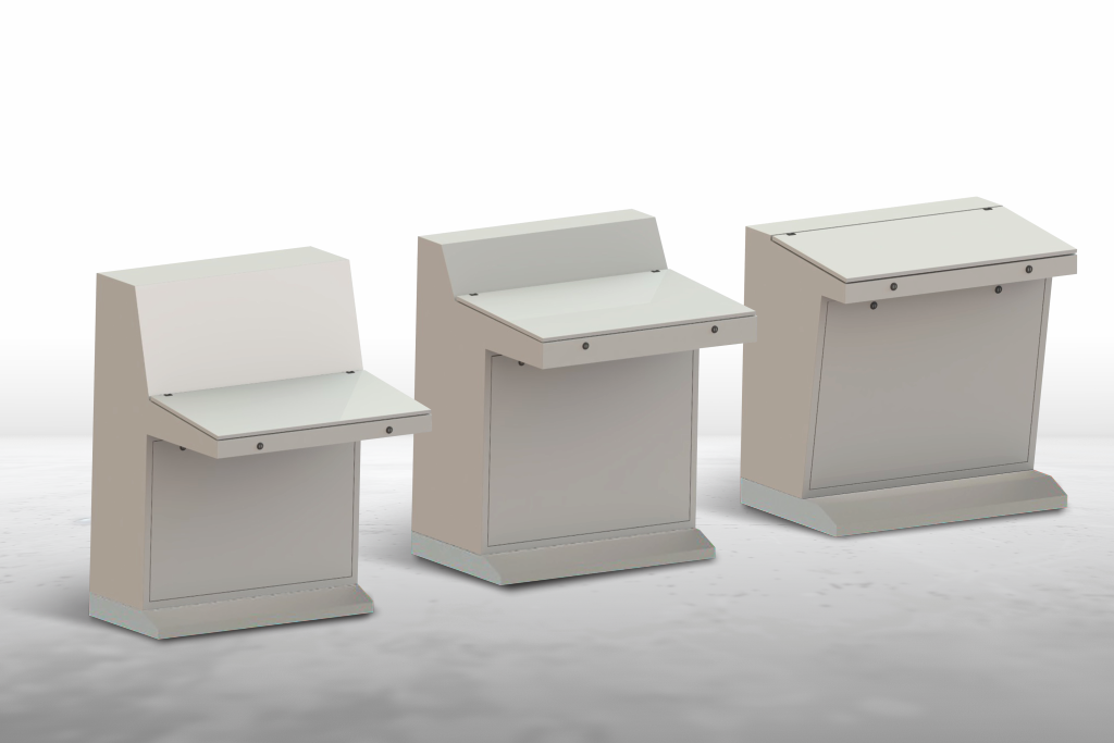 As mesas de comando são fabricadas de forma compacta e robusta, entretanto com um espaço interno amplo. Suas características facilidade na montagem de acessórios. Possibilita instalação e manutenção com a porta aberta, e tem acesso facilitado através da porta frontal e traseira.